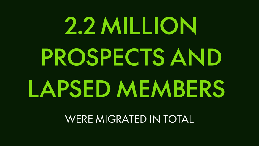 6. Migration of lapsed members and prospects – where 2.2 million records were migrated, with their marketing preferences and consents.
