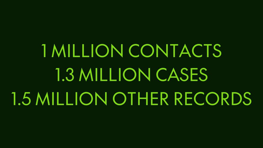 3. Case Management migration – this was the first piece that went live, and as part of it we migrated 1 million contacts, 1.3 million cases, and their related correspondence data (Tasks, Email Messages, Live Chat Transcripts, Content Documents, etc.)